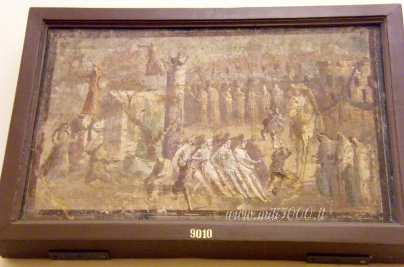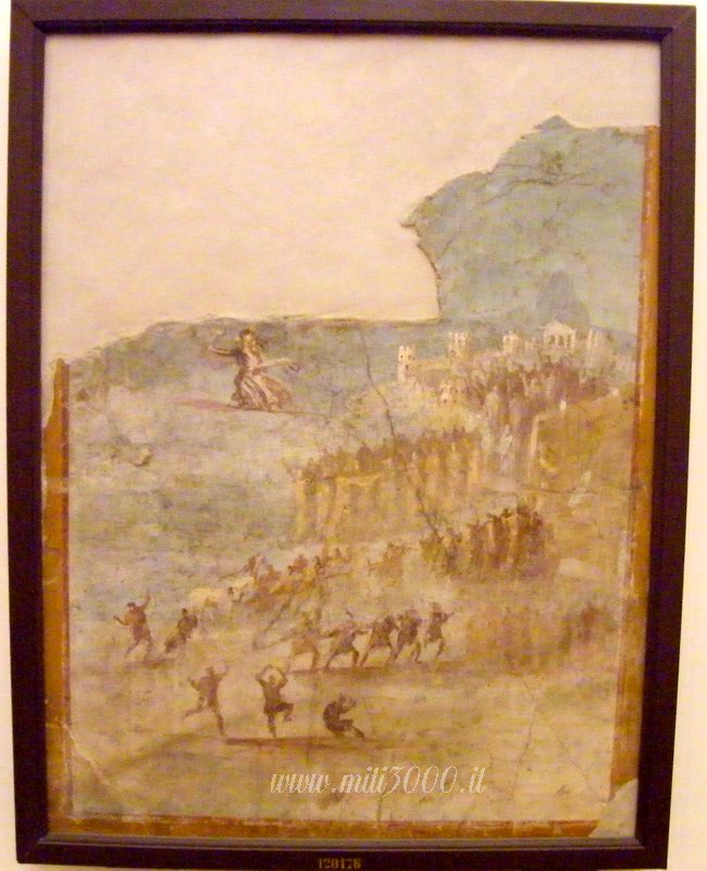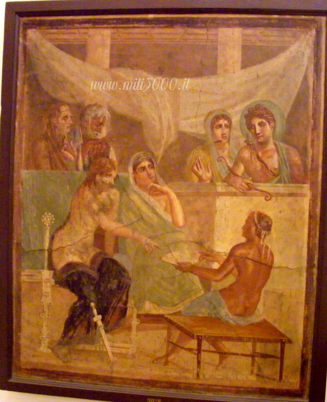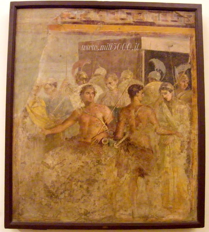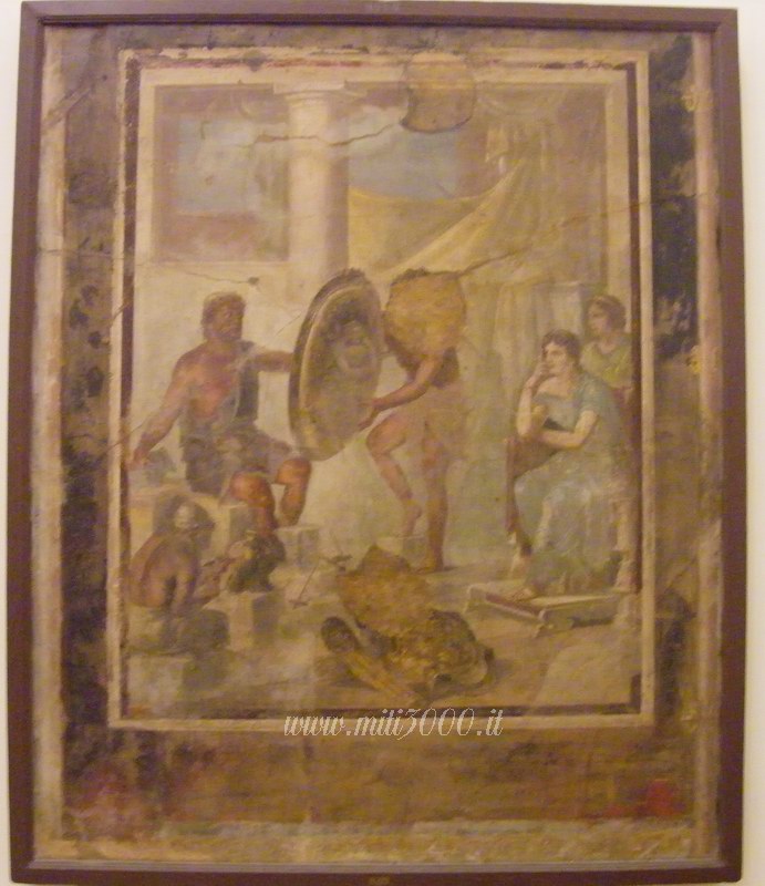 There was a tendency to abandon the stories whose tragic end or high moral content the punishment inflicted by to gods to whomever rebelled against human limits did not allow a different or expanded interpretation. Thus the story of Icarus who fell to the earth because he flew too close to the sun, the subject of several beautiful paintings at Pompeii, is only found twice in the last phase of the city's life. But the number of paintings relating to episodes connected whit the Trojan War grew the events leading up to it, such as the Judgment of Paris, the preparation for it, such as the Sacrifice of Iphigenia the Discovery of Achilles at Skyros, the Forging of THE Hero's. Weapons and their Delivery to Thetis, up TO the entrance of the wooden horse into the walls of Troy, and including the tragic prophecies of Laocoon and Cassandra. until the right or the fire. These were all painful but necessary events that paved the way for Aeneas to reach Latium in preparation for the foundation of Rome.