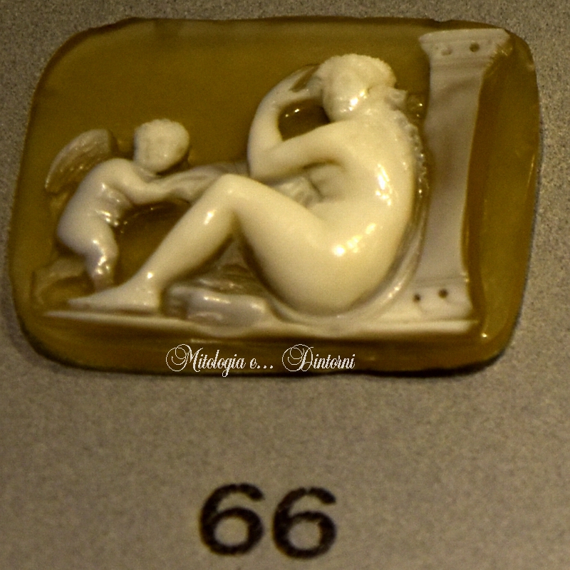Afrodite seduta dinanzi a un'ara su cui è Eros |